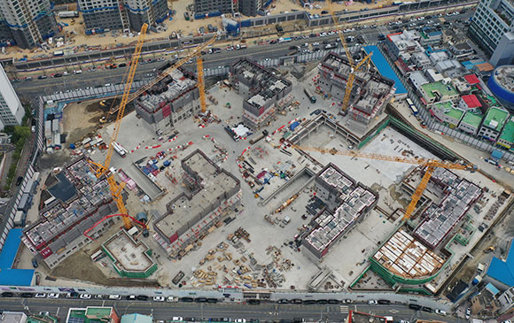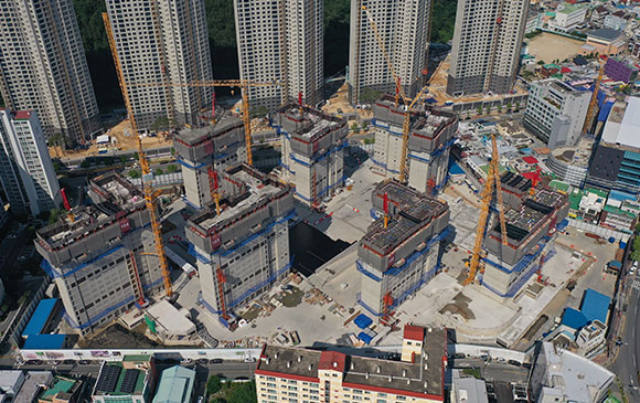 당 현장은 2021년 08월 착공하여 현재 골조공사 完(부대시설 골조 中) 및 세대 내·외부 마감공사를 진행하고 있습니다.