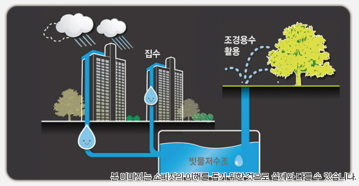 - 단지내 일부 빗물을 일부 저장하여 조경용수로 활용