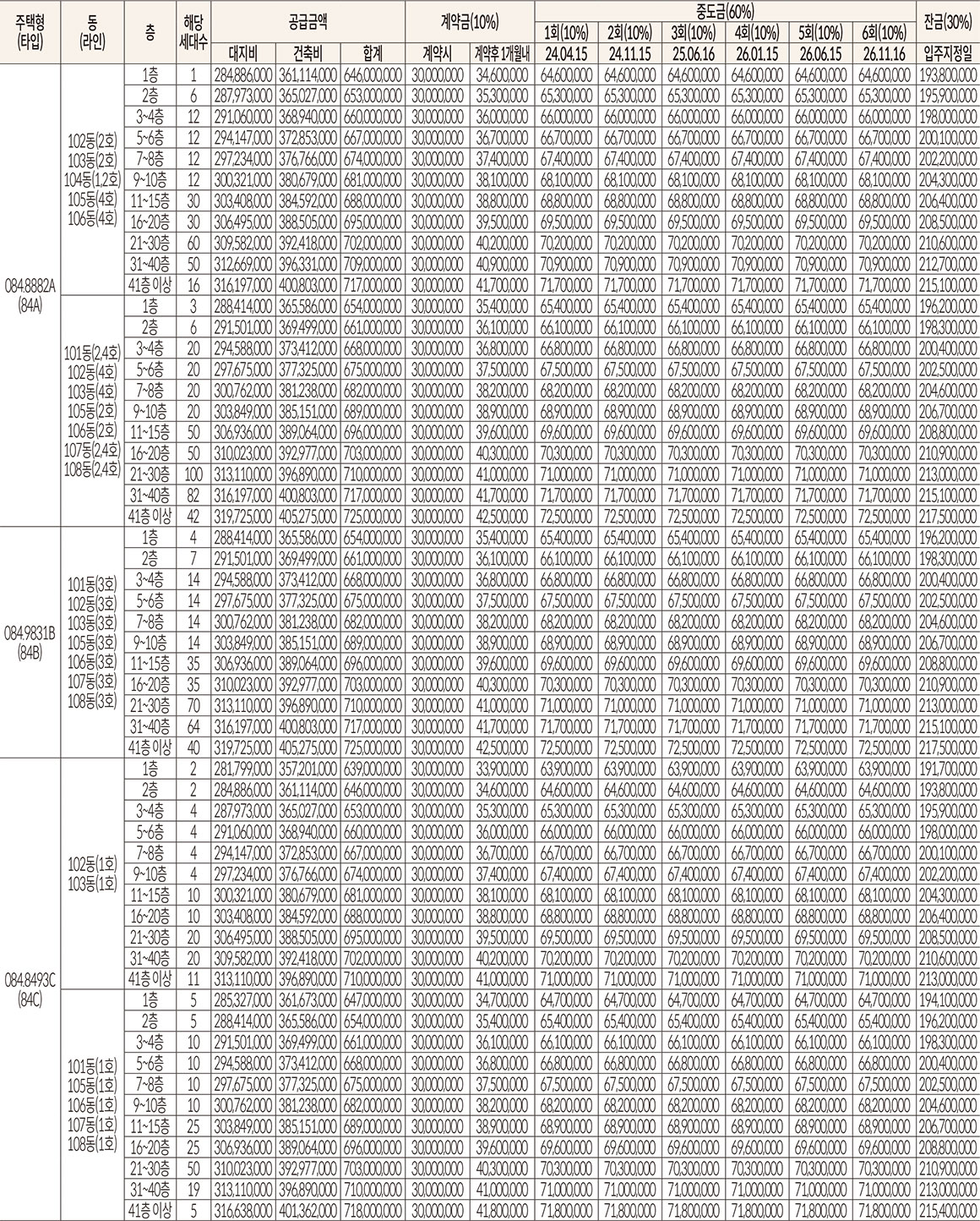 공급금액 및 납부일정