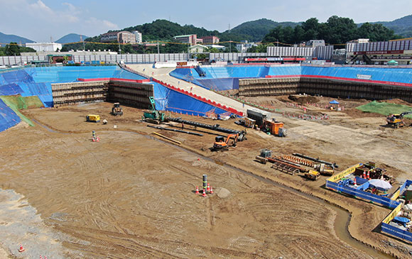 -. 토공 및 흙막이 : 완료 (추후 되메우기 예정)