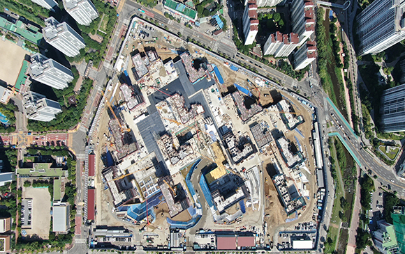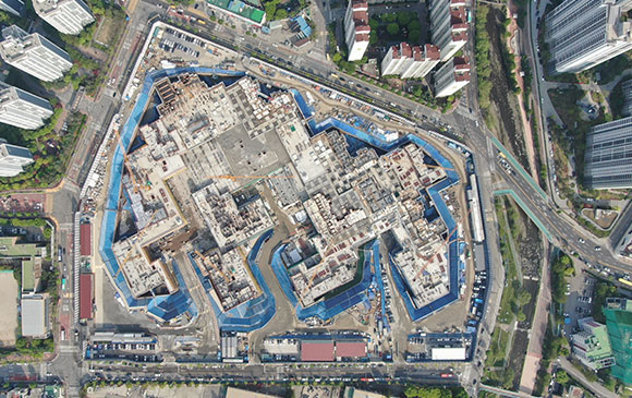 -. 철근콘크리트공사 : APT 및 주변 지하주차장 지붕층 ~ 3F 바닥 콘크리트 타설,