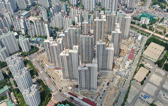 -. 마루공사 : 세대 마루 자재 양중 및 시공