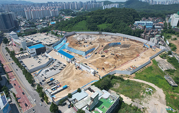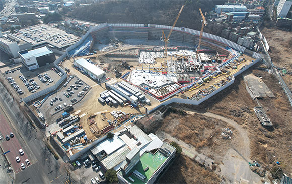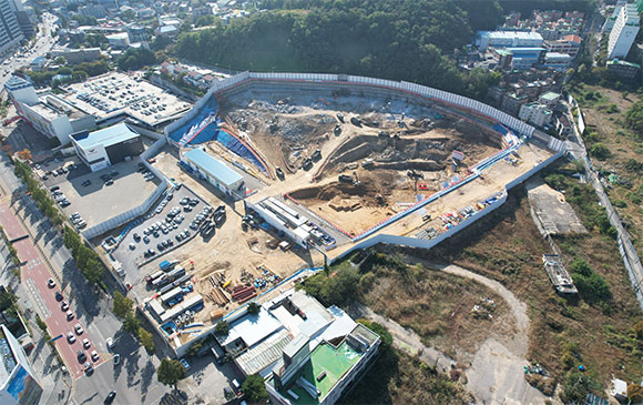▶ 터파기 및 토사, 암 반출 진행 중